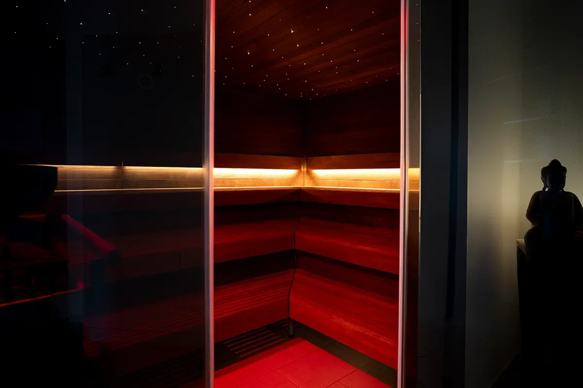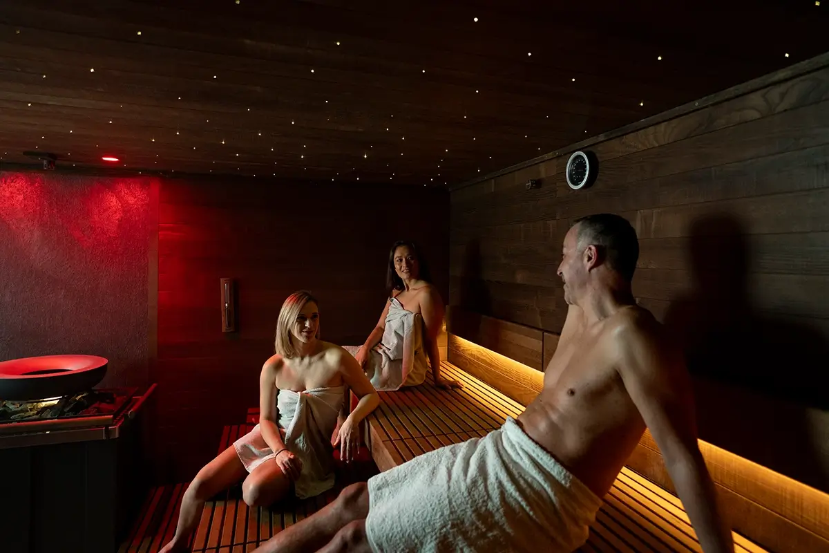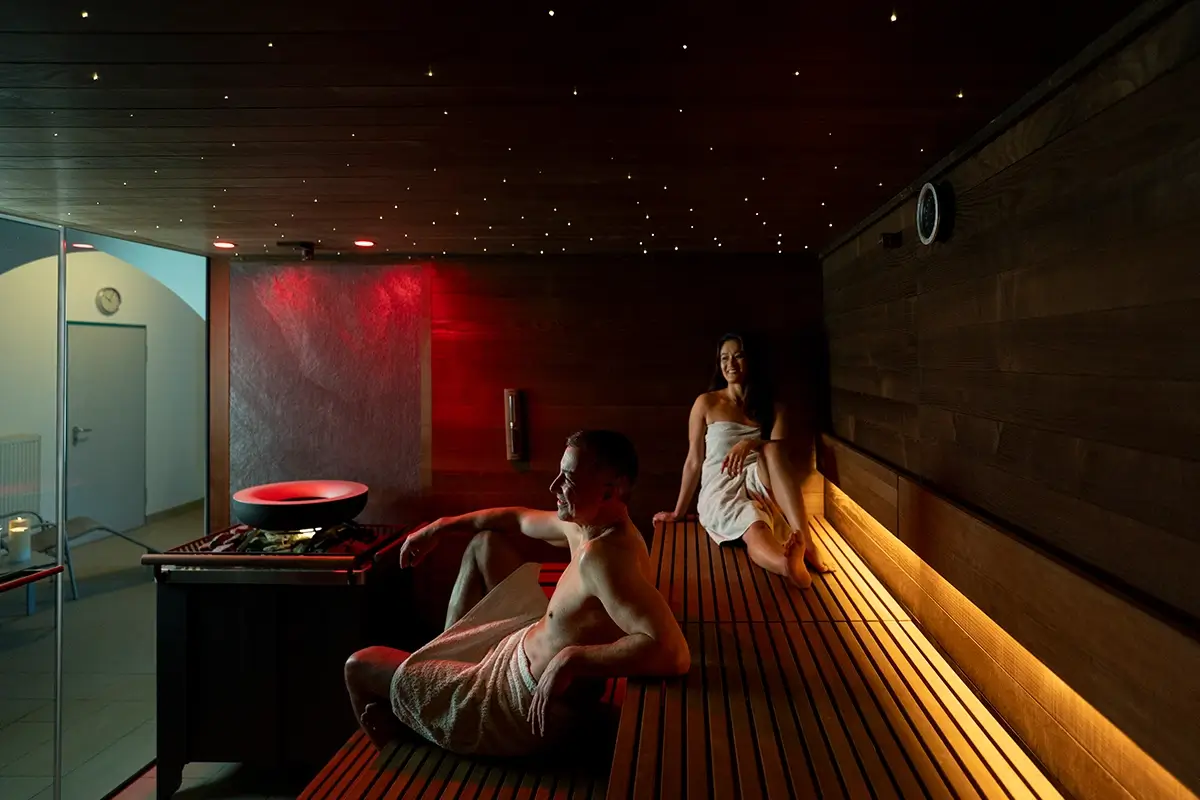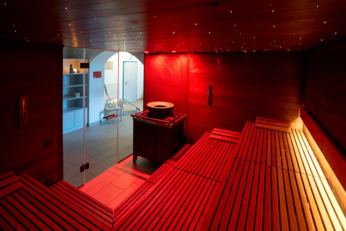 SANARIUM: Das Sanarium ist eine Saunavariante die wir jeden Dienstag anbieten. Hierbei ist die Temperatur geringer, im Gegenzug jedoch die Luftfeuchtigkeit wesentlich höher, als bei der traditionellen Form. Da die Belastungen für den Körper geringer sind, können Sie entspannt auch etwas längere Saunagänge machen. Außerdem eignet sich diese Art des Saunierens besonders nach dem Workout, zum „Warm Down.“